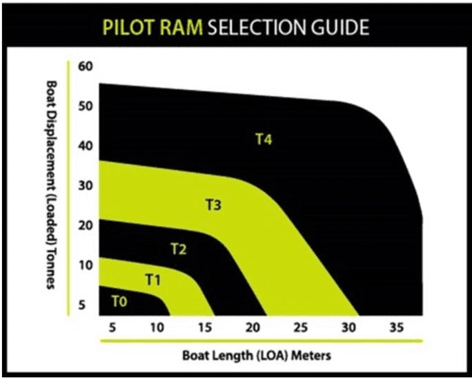 The RAM T0 Hydraulic linear actuator combines a cylinder, pump, motor, clutch, and reservoir in a pre-filled, sealed unit. Designed to be used on vessels fitted with mechanical primary steering that can be back-driven. When the clutch is disengaged the cylinder is free and moves with the primary steering. To operate the unit in autopilot mode the course computer energizes the clutch solenoid coil and runs the bidirectional motor to extend and retract the ram. Internal relief valves protect the unit and its mountings from rudder strikes, grounding, etc