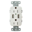 Hubbell USB15A5W White Outlet Dual 15 Amp 125v 2-Pole and Dual 5 Amp 5v USB Ports