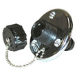A bulkhead-mounted washdown fitting that is inexpensive, functional, easy to install, and rust-proof. This injection-molded, chrome-plated ABS fitting is 2 1/4" in diameter and mounts in a 1 1/4" diameter hole with 3 countersunk screws.